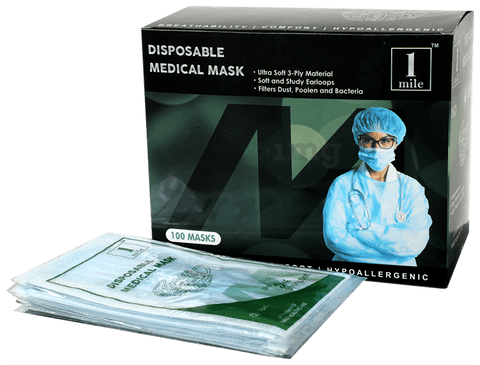 1Mile Disposable 3 Ply Face Mask Blue Single Pouch