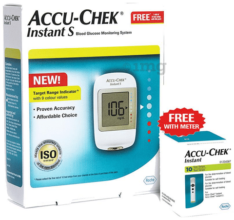 Accu-Chek Instant S Blood Glucometer with 10 Test Strips Free