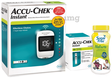 Accu-Chek Instant Wireless Blood Glucose Monitoring System & 10 Test Strip with Sugar Free Natura 50gm Free