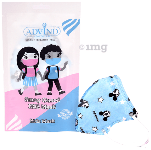 Advind Healthcare Smog Guard N95 Kids Mask without Valve for 4-12 Years Blue Mickey Mouse Design