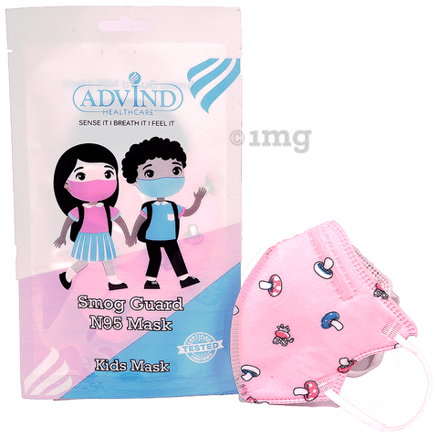 Advind Healthcare Smog Guard N95 Kids Mask without Valve for 4-12 Years Pink Mushroom Design