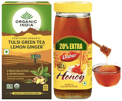 Anti-oxidants Combo of Organic India Lemon Ginger Tulsi Green Tea 25 Tea Bag and Dabur Honey 1kg