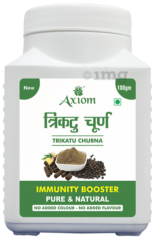 https Axiom Trikatu Churna is a combination of three ayurvedic herbs namely sunthi (dry ginger), marchi (black pepper) and pippali (long pepper). It is also known as trikatu choornam, trikatu corona, kasutraya churan, or katautraya churan. It is widely used for treating respiratory and digestive related conditions. This churan is readily available in the market or can even be made at home. The churan has hot potency and pungent taste. It is a natural stimulant and is good for spleen, liver, and pancreas. Axiom Trikatu churan helps in improving the immunity. It aids in improving the digestion by increasing the fire elements in the body that helps in proper digestion and increase appetite. Axiom Trikatu churan is 100% Natural WHO GMP, GLP certified.