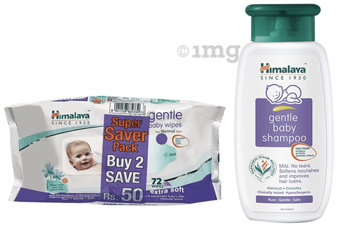 Baby Care Combo of Himalaya Gentle Baby Shampoo 400ml and 2 Packs of Himalaya Gentle Baby Wipes 72 Each