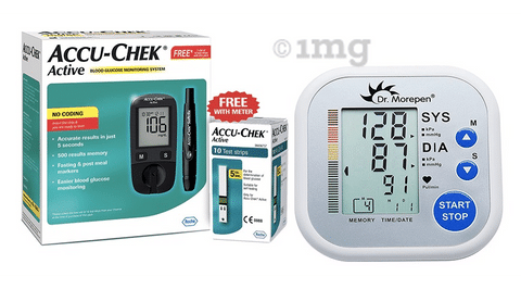 BP and Glucose Meter Combo of Accu-Chek Active Blood Glucometer Kit (Box of 10 Test Strips Free) and Dr Morepen BP02 Blood Pressure Monitor