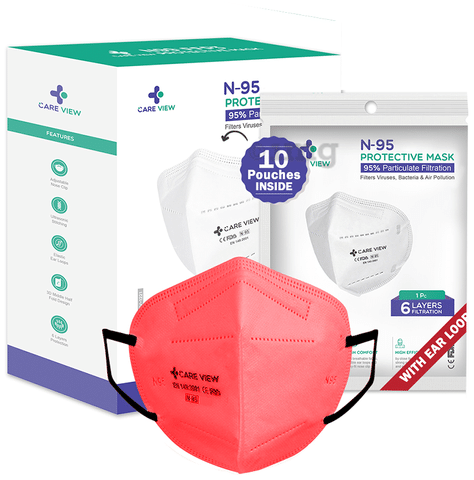 Care View Universal Red CV1221 N95 FFP2 Certified Earloop with 6 Layers Filtration Protective Mask