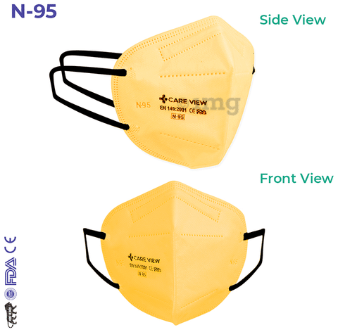 Care View Universal Yellow CV1221 N95 FFP2 Certified Earloop with 6 Layers Filtration Protective Mask