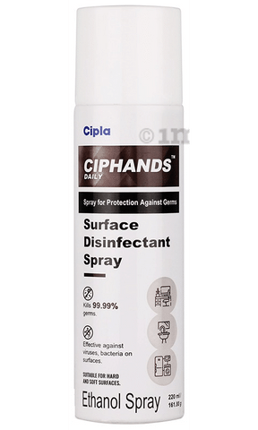 Cipla Ciphands Daily Surface Disinfectant Spray has an anti-microbial action. It is an effective way for instant hand disinfection. It helps to kill bacteria, virus and germs on surfaces.