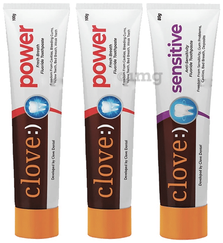 Clove Combo Pack of 2 Power Fresh Breath Fluoride Toothpaste 100gm and 1 Sensitive Anti-Sensitivity Fluoride Toothpaste 80gm