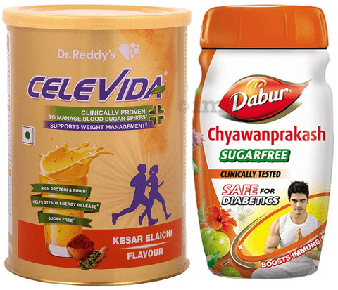 Combo Pack of Celevida Kesar Elaichi Nutrition Health Drink 400gm & Dabur Chyawanprakash Sugarfree 900gm