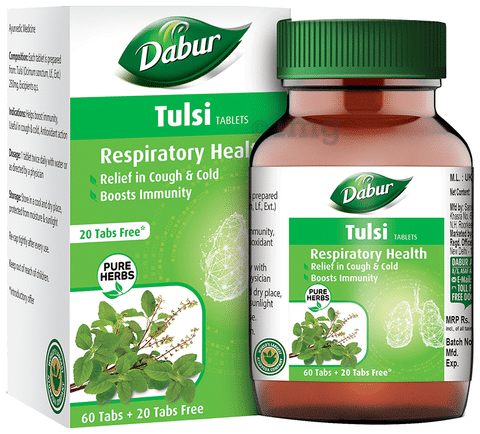 Dabur Pure Herbs Respiratory Health Tulsi Tablets - Get 20 Tablets Free