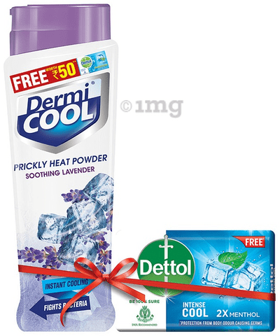 Dermicool Prickly Heat Powder Soothing Lavender with Dettol Intense Cool Soap 125gm Free
