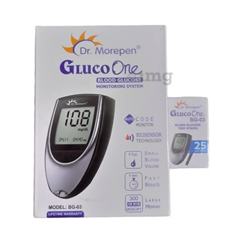 Dr Morepen BG 03 Gluco One Glucose Monitoring System with Gluco One BG 03 Blood Glucose 25 Test Strip