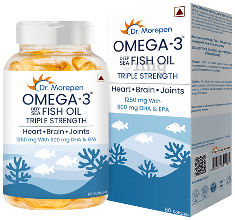 Dr. Morepen Omega 3 Triple Strength 1250mg Deep Sea Fish Oil with DHA & EPA 900mg Softgel