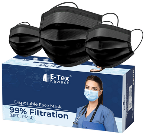 E-Tex Kawach 99% Filtration Disposable Face Mask Free Size Black