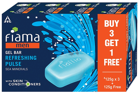 Fiama Men Gel Bar Refreshing Pulse Buy 3 Get 1 Free (125gm Each)