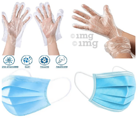 Fine Morning Pharma Combo Pack of Disposable 3 Ply Surgical Face Mask with Nosepin and Transparent Disposable Plastic Hand Gloves (100 Each)