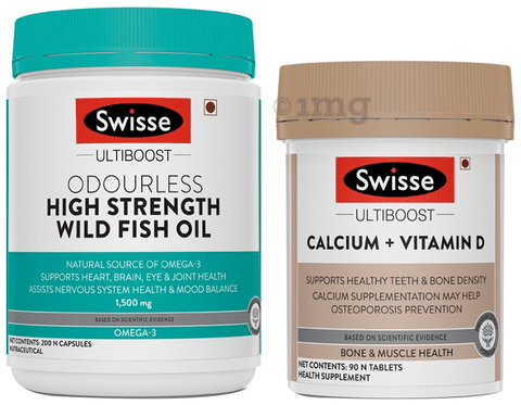 General Wellness Combo-Swisse Ultiboost Odourless High Strength Wild Fish Oil 1500mg 200 Capsule & Calcium+Vitamin D 90 Tablet