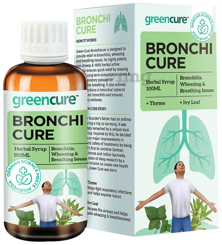 - Use Green Cure Bronchicure Herbal Lung Care Syrup daily in case of asthma, bronchitis, pollution allergy, irritation in the air passage and other breathing problems.