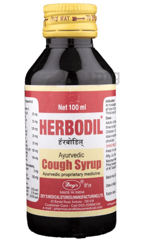 Herbodil syrup contains herbal ingredients such as talispatra, Miri, Sunthi, Pimpli, Yashtimadhu, Velchi and Dalchini. These ingredients have cooling, pungent effect that corrects throat irritation, effective for cold, cough, asthma and fever, helps in expectoration. It also possesses antiseptic and antimicrobial properties.