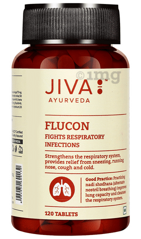 https Jiva Flucon Tablet works by increasing immunity levels of the upper respiratory system which eventually protects the body from seasonal sneezing, cold, headache, heaviness in the chest, and cough. Ingredients which are used in this formulation control mucus secretions and ensures easy breathing. It also helps to balance Vata and Kapha Dosha which naturally get vitiated in such disorders.