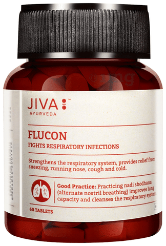 https Jiva Flucon Tablet works by increasing immunity levels of the upper respiratory system which eventually protects the body from seasonal sneezing, cold, headache, heaviness in the chest, and cough. Ingredients which are used in this formulation control mucus secretions and ensures easy breathing. It also helps to balance Vata and Kapha Dosha which naturally get vitiated in such disorders.