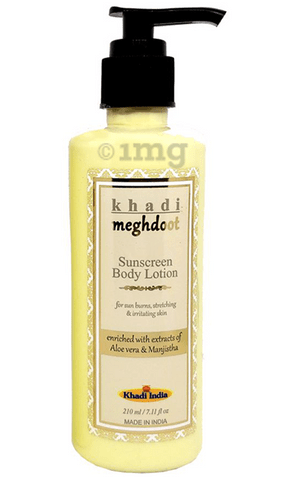 https Khadi Meghdoot Sunscreen Body Lotion is a herbally formulated full spectrum sun protectant. The sunscreen lotion is enriched with natural extracts that guard the skin against the harmful effects of UV radiation.