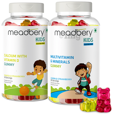 Meadbery Gluten Free Kids Combo Pack of Calcium with Vitamin D Gummy and Multivitamin & Minerals Gummy