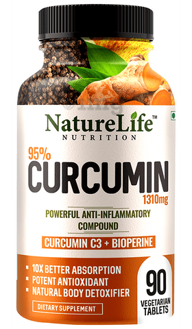 Nature Life Nutrition 95% Curcumin 1310mg (Curcumin C3+Bioperine) Vegetarian Tablet