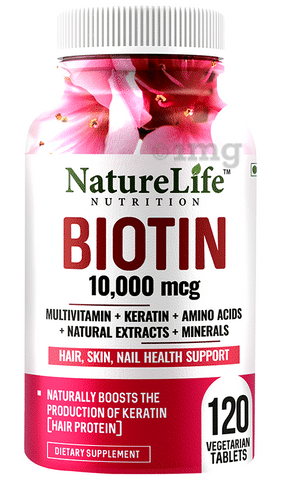 Nature Life Nutrition Biotin 10000mcg Multivitamin+Keratin+Amino Acids+Natural Extracts+Minerals Vegetarian Tablet