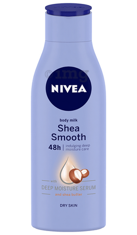 Nivea Smooth Milk Body Lotion with Shea Butter enriched with shea butter aids in providing intense moisturization. Enriched with shea butter and deep moisture serum, it deeply moisturizes dry skin and gives it a silky smooth feeling that lasts for up to 48 hours.