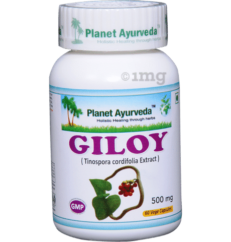 https Planet Ayurveda Giloy capsule is prepared from the pure herbal extract obtained from Tinospora cordifolia. Giloy is anti-arthritic, anti-pyretic, digestive, anti-inflammatory, anticancerous and excellent blood purifier. It is also used in the treatment of chronic fever, gout, cardiac debility, skin problems, anemia, jaundice, leprosy and all type of cancers. Planet Ayurveda Giloy Capsules are 100% pure and natural.