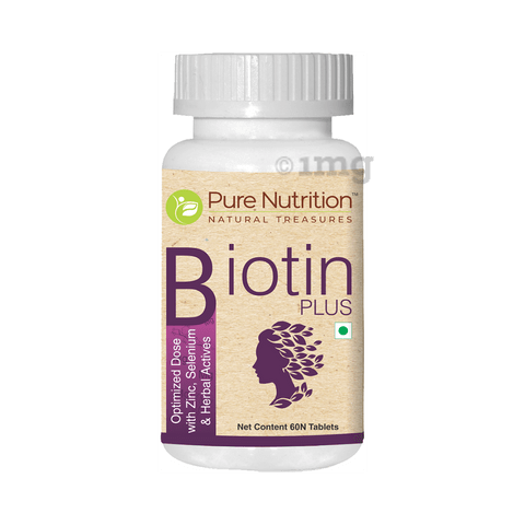 Pure Nutrition Biotin Plus 10000mcg Tablet is a health supplement that helps in promoting healthy hair, radiant skin, and stronger nails. It helps support energy metabolism and aids in the conversion of food into energy. Biotin Plus tablet is useful in hair fall and dry skin.