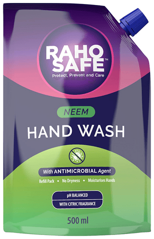 Raho Safe Neem Hand Wash Refill ensures effective handwashing and also prevents the spread of germs. The pH-balanced formula keeps your hands fresh and away from dryness at all times. The product comes with the goodness of neem leaf extracts that make your skin healthier and moisturized at all times.