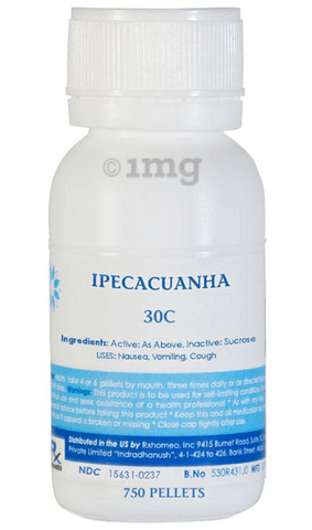 Rxhomeo® Ipecacuanha Pellets is a homoeopathic single remedy for anaemia, asthma, bronchitis, catarrh, coughs, enteric fevers, nausea, remittent fever, vomiting and whooping cough.