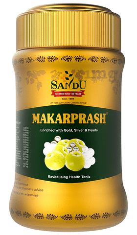 Sandu Makarprash is a special Ayurvedic formulation for the entire family. It is a potent immunomodulator, enhances immunity and provides protection from recurrent infections. The product is also used to relieve stress, increase stamina and boost performance.