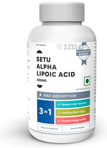Setu Alpha Lipoic Acid 300mg Tablet is a powerful antioxidant that protects the neurons from oxidative stress. It is useful in lowering blood sugar levels. Additionally, it detoxifies heavy metals in the body, promoting an everyday healthy cleanse.