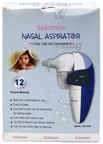 Solomon Nasal Aspirator is used to clear the running nose of a child and adult without putting pressure and rubbing the nostrils. It is compact and easy to hold and has a comfortable design to prevent the possibility of injury during operation. The head module design, collection cup, and the head part can be taken off from the device and washed. It is lightweight and produces low noise that makes it easy to use while the baby is sleeping.Uses
