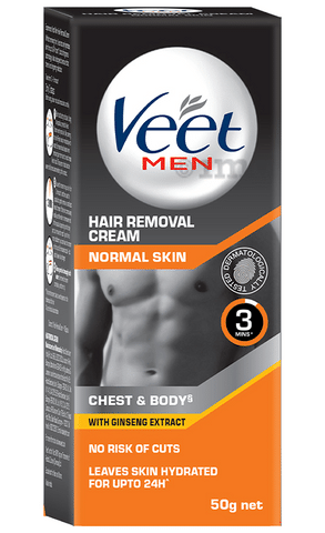 Veet Hair Removal Cream for Men is made from ingredients that help in removing hair from the surface of the skin. It can be used to remove hair from the chest, arms, legs, and underarms in men. It is available for people with sensitive skin as well as normal skin.