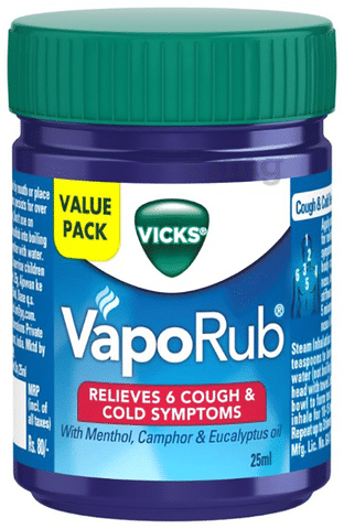 https Vicks Vaporub contains natural ingredients that provide effective multi-symptom relief from cold symptoms. When applied on chest and throat, relieves cough and cold due to minor throat infection associated with the common cold.
