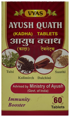 Vyas Ayush Quath (Kadha) Tablet is a convenient and easy way to have kadha daily. It is made using the powerful combination of four Ayurvedic herbs such as Tulsi, dalchini, sunthi, and kalimirch, these kadha tablets effectively improve immunity. All the ingredients in this kadha possess anti-allergic and antiviral properties, hence they help relieve symptoms associated with viral and bacterial infections.
